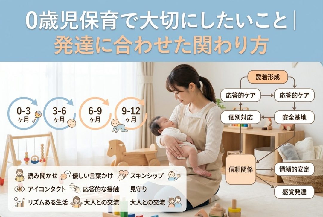 保育士として0歳児クラスを担当する方、これから0歳児保育に携わる方、そして我が子を保育園に預ける保護者の方々に向けて、本記事では0歳児保育の本質的な考え方から具体的な実践方法まで詳しく解説します。保育所保育指針に基づいた専門的な知見と、現場で活かせる実践的なノウハウをお伝えしていきます。